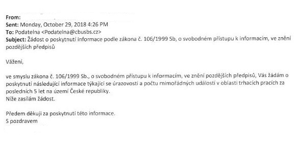 Žádost o informace o činnosti prošetřovatele